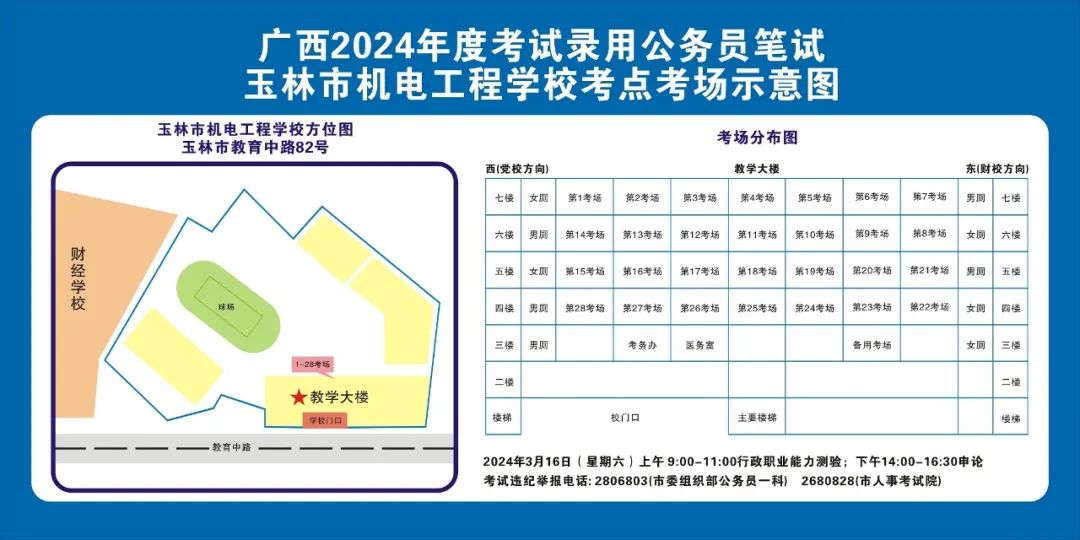 2024年選擇在玉林考區(qū)參加考試的考生人數(shù)較多,屆時(shí)考點(diǎn)區(qū)域內(nèi)的食宿、交通較為緊張。請(qǐng)?zhí)崆傲私獗救怂诳键c(diǎn)具體位置,熟悉考點(diǎn)周邊情況,根據(jù)考點(diǎn)的情況合理做好食宿安排和出行計(jì)劃。需要特別注意的是:玉林市第一職業(yè)中等專業(yè)學(xué)校考點(diǎn)是設(shè)在該校的東校區(qū)(人民東路東235號(hào));玉林市第一中學(xué)考點(diǎn)是設(shè)在該校的運(yùn)嶺路校區(qū)(二環(huán)北路1228號(hào))!