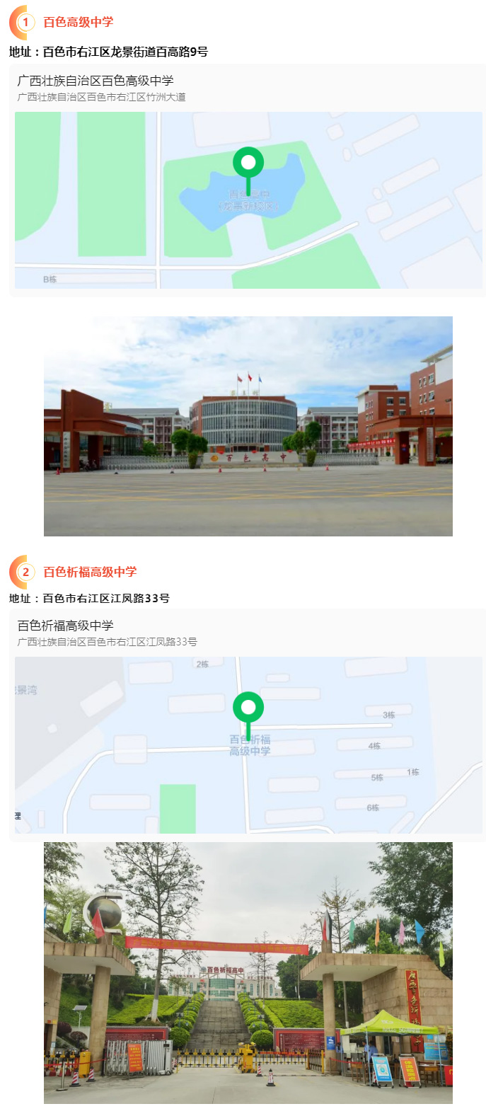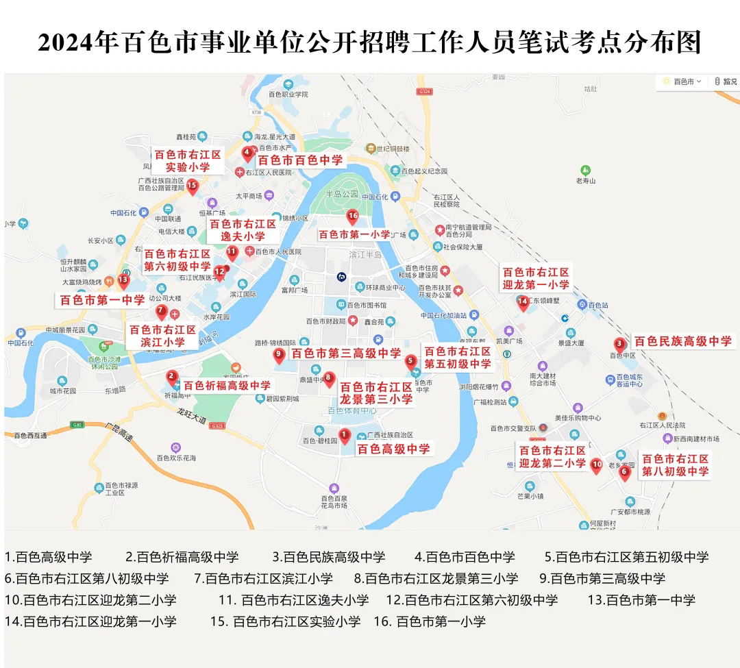 2.請(qǐng)?zhí)崆笆煜た键c(diǎn)地址,做好路線、住宿的安排。本次考試參考人數(shù)較多,考點(diǎn)分布分散,建議考生考前實(shí)地察看考點(diǎn),確認(rèn)考點(diǎn)入口位置,防止走錯(cuò)考點(diǎn)。請(qǐng)充分考慮考點(diǎn)周邊交通通行情況和停車場(chǎng)地容量,合理安排出行方式,預(yù)留充足時(shí)間,確??荚嚠?dāng)天按時(shí)到達(dá)。另外,考試期間百色市及各考點(diǎn)學(xué)校周邊的住宿比較緊張,請(qǐng)?zhí)崆邦A(yù)定。