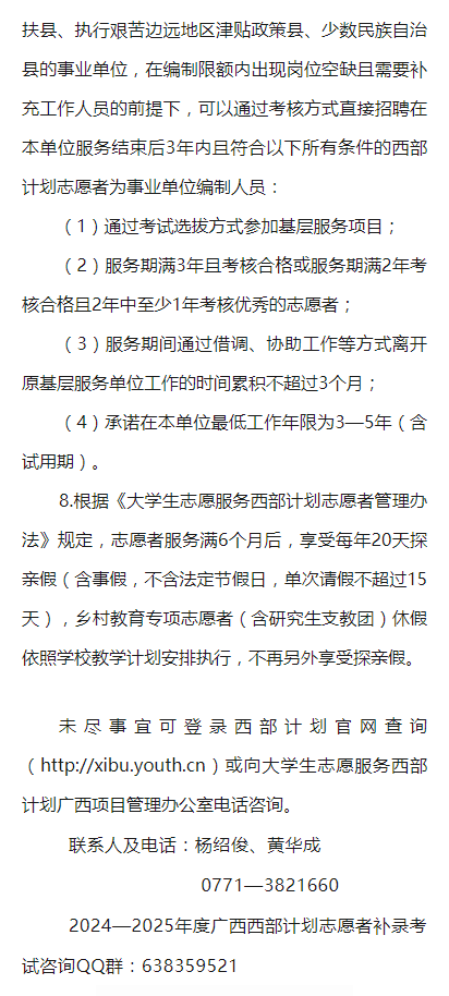 原文標題:2024-2025年度廣西大學(xué)生志愿服務(wù)西部計劃補錄公告