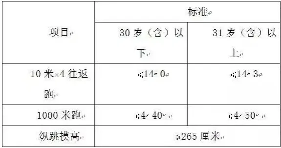 參照《關(guān)于印發(fā)公安機(jī)關(guān)錄用人民警察體能測(cè)評(píng)項(xiàng)目和標(biāo)準(zhǔn)(暫行)的通知》(人社部發(fā)〔2011〕48號(hào))的項(xiàng)目及測(cè)試規(guī)則,結(jié)合《公安民警體育鍛煉達(dá)標(biāo)手冊(cè)》成績(jī)標(biāo)準(zhǔn),本次體能測(cè)評(píng)的項(xiàng)目和標(biāo)準(zhǔn)如下: