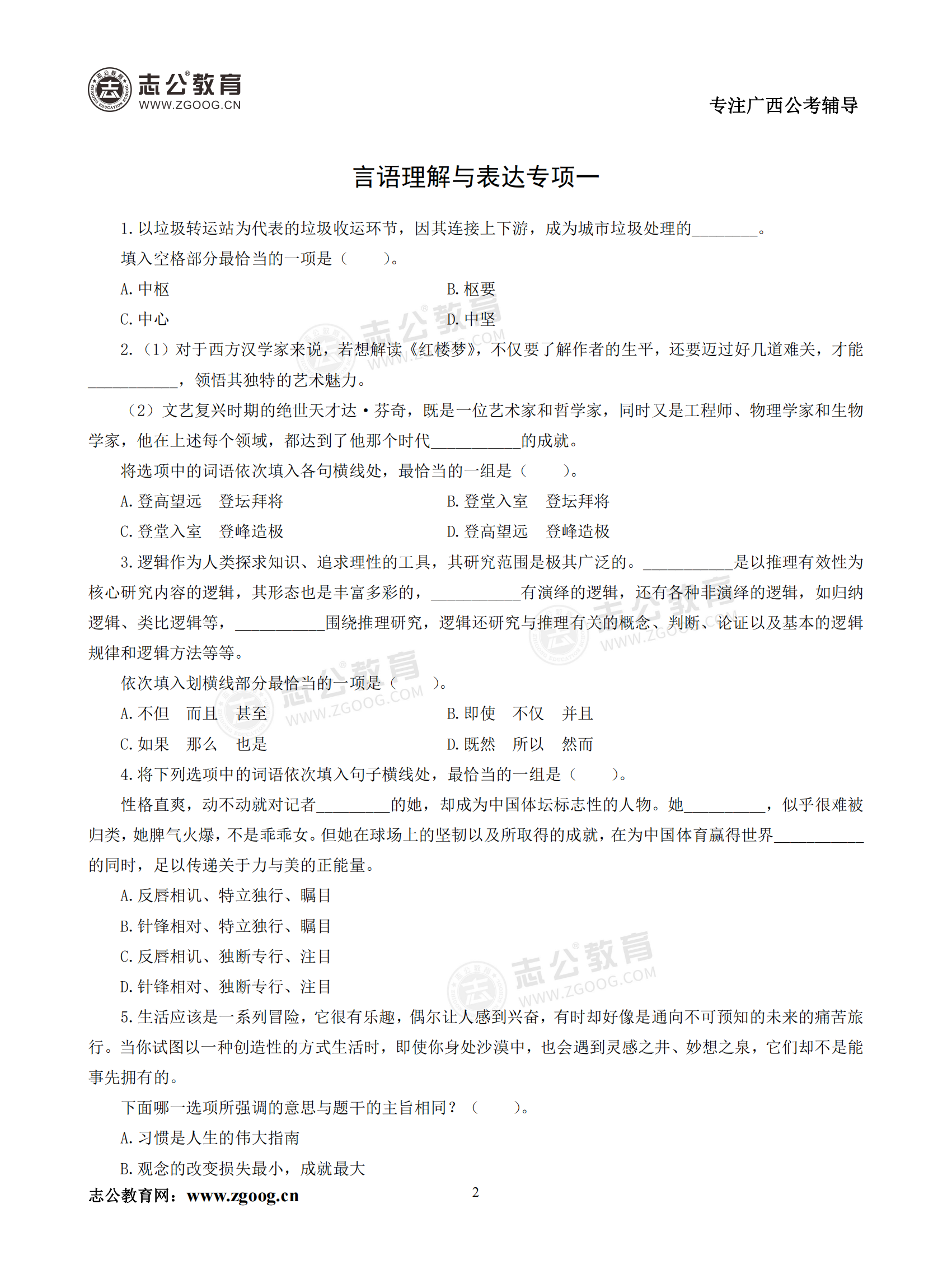 【公考模塊練習(xí)】言語(yǔ)理解題一(試題)