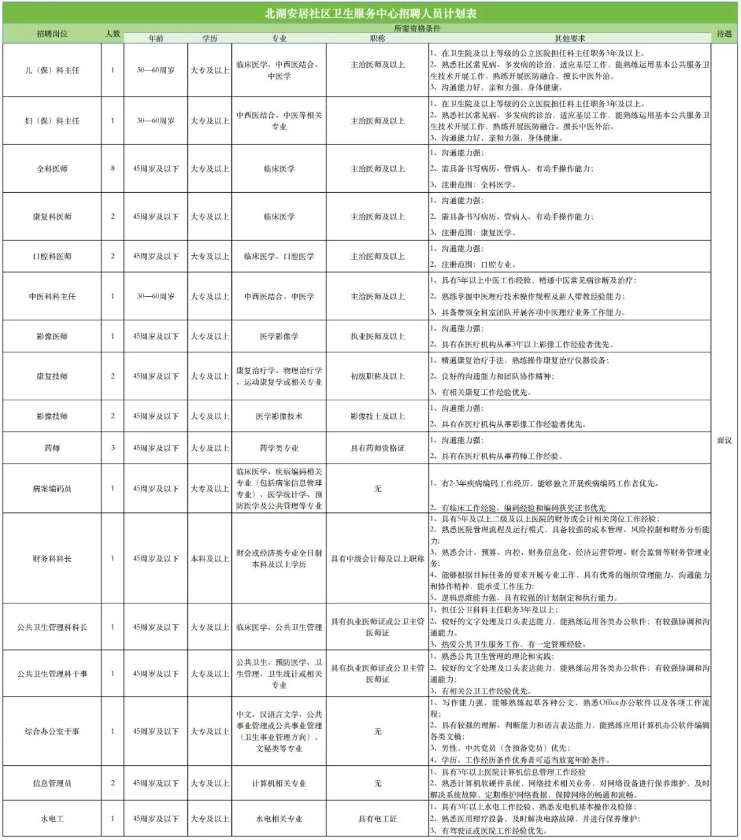 2025年北湖安居社區(qū)醫(yī)院招聘31人