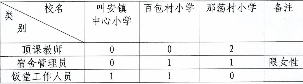因工作需要,上思縣叫安鎮(zhèn)中心小學(xué)現(xiàn)面向社會公開招聘頂課教師、安全協(xié)管員和飯?zhí)霉ぷ魅藛T等。招聘相關(guān)事項如下:
