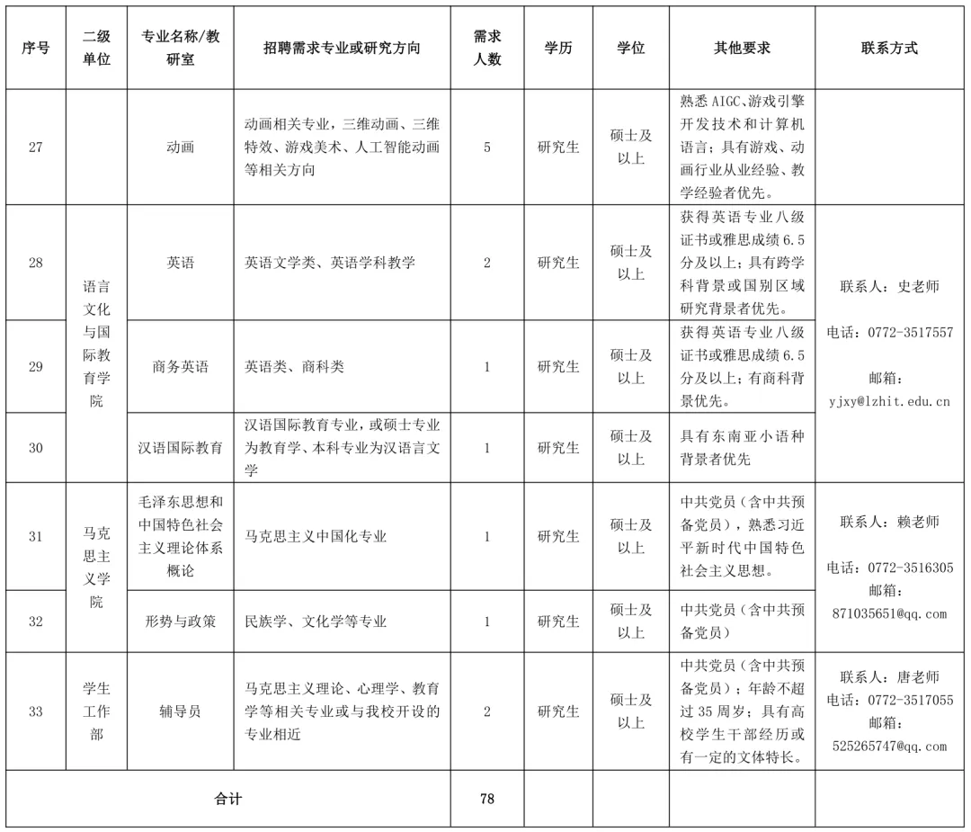 2025年柳州工學(xué)院教師招聘78人公告
