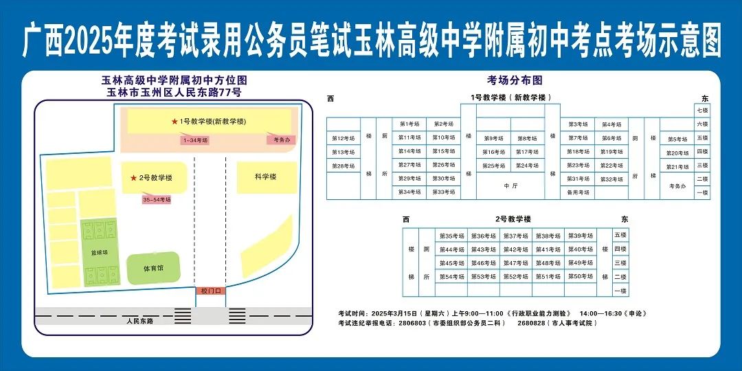 玉林市第一中學(xué)(運(yùn)嶺路校區(qū))考點(diǎn)11:00-12:00,16:30-17:30 在考點(diǎn)安排公交車和值勤人員,負(fù)責(zé)將考生接送到玉林汽車總站。