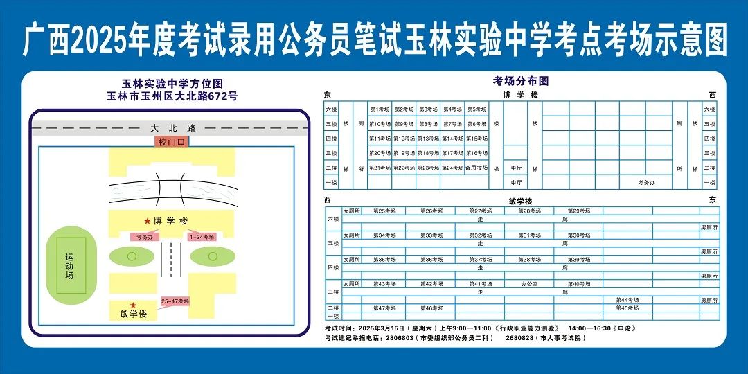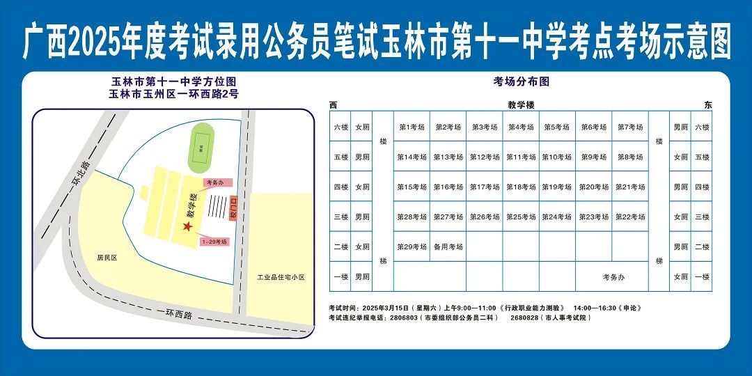 除考試當(dāng)天考生可以進(jìn)入考點(diǎn)外,考生不得提前進(jìn)入考點(diǎn)查看考場(學(xué)校將在大門處擺放考場分布示意圖),玉林考區(qū)11個(gè)考點(diǎn)的考場布置情況如下: