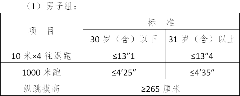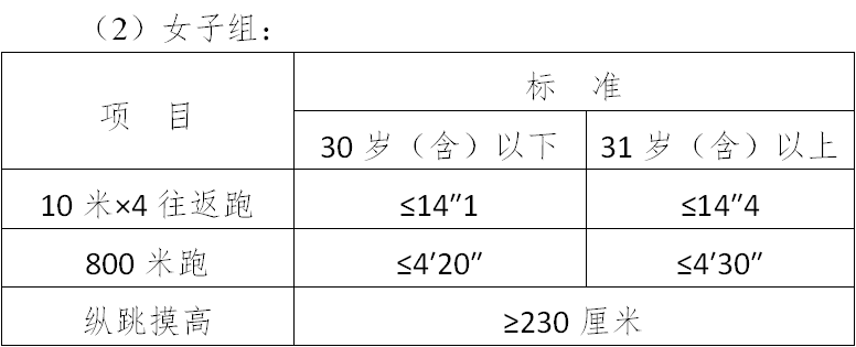 (三)面試體能測試三項全部達(dá)標(biāo)的,視為合格