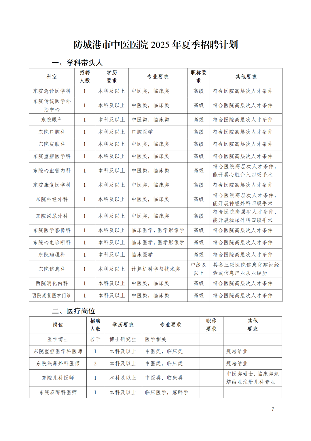 2025年防城港市中醫(yī)醫(yī)院夏季人才招聘簡章