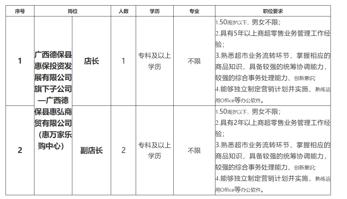 原文標(biāo)題:廣西德??h惠保投資發(fā)展有限公司招聘公告