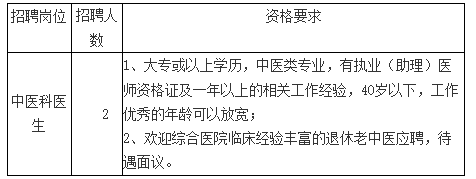 我院因業(yè)務(wù)發(fā)展需要,決定面向社會公開招聘中醫(yī)科醫(yī)生2人,現(xiàn)將有關(guān)事項公告如下: