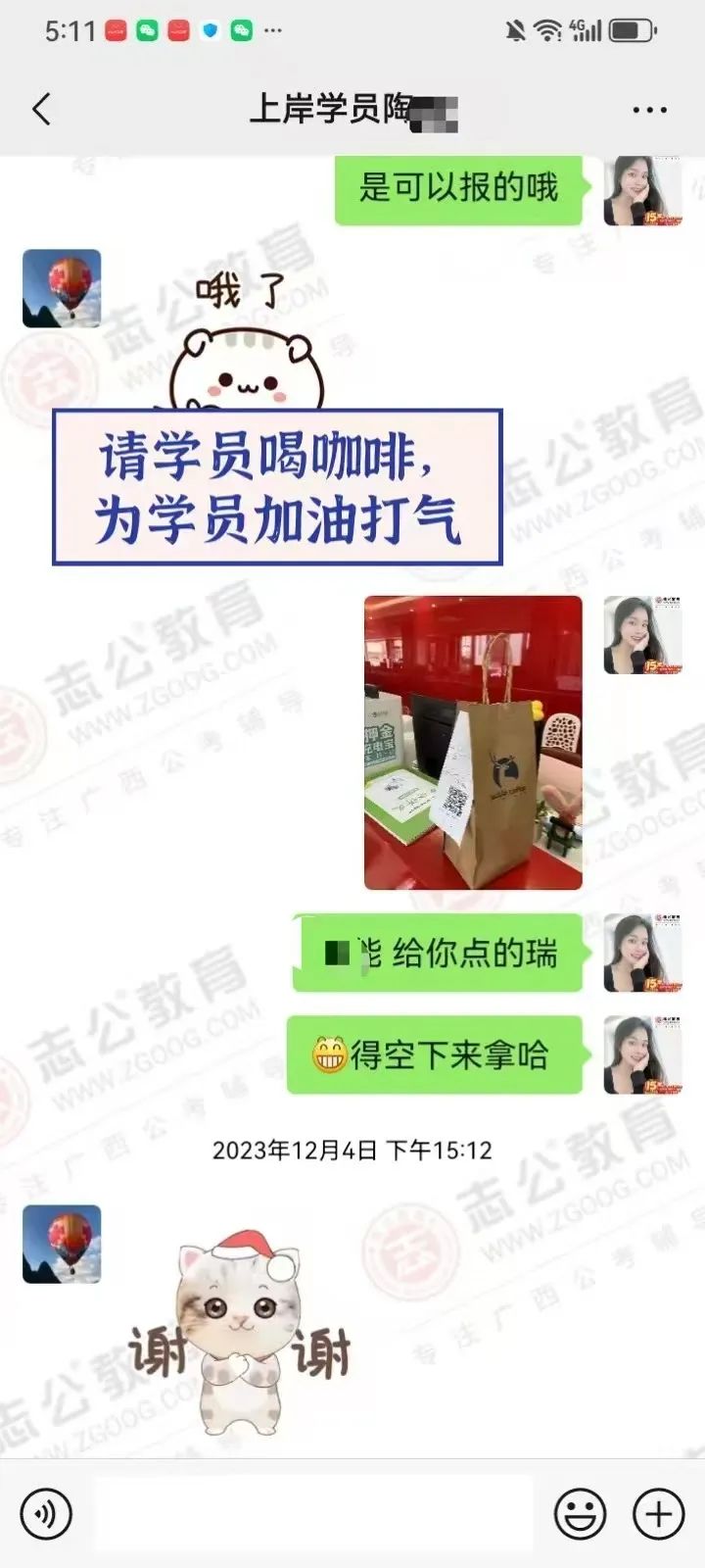 為他安排一杯暖心的咖啡,他在第二天也回請(qǐng)了我“帶有西大文化底蘊(yùn)的瑞幸”。期間,還主動(dòng)給我轉(zhuǎn)介紹了 3 個(gè)同學(xué)來(lái)報(bào)班!在這條逐夢(mèng)的道路上,我們不僅僅是師生,更是相互信任、相互支持的知心朋友。