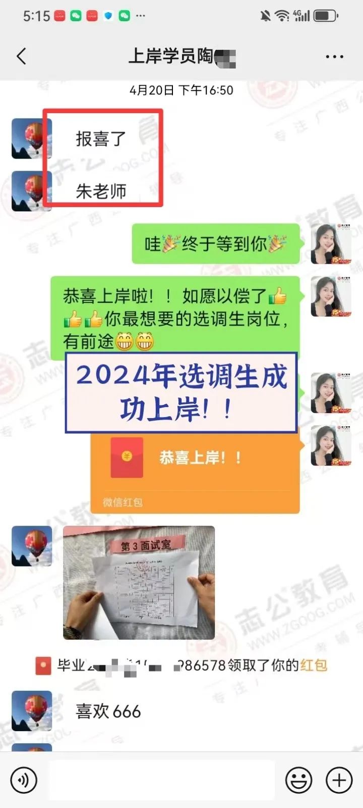 2023年,臨近研究生畢業(yè)時(shí),一次偶然的機(jī)會(huì),他得知同學(xué)的愛(ài)人也就是我,在我們志公教育任教。加我微信后跟我了解到我們志公有一個(gè)非常適合他的畢業(yè)成公課程,也了解到我們是一家優(yōu)秀的公考培訓(xùn)機(jī)構(gòu)后,8月他毫不猶豫地報(bào)了我們的畢業(yè)成功班。從那以后,他一邊上學(xué)一邊培訓(xùn),常常學(xué)習(xí)到深夜。2024年國(guó)考,他進(jìn)面了,聯(lián)系了我升級(jí)面試班,但未能成功上岸。不過(guò)他沒(méi)有絲毫氣餒,迅速調(diào)整心態(tài),繼續(xù)征戰(zhàn)農(nóng)信社和選調(diào)生。