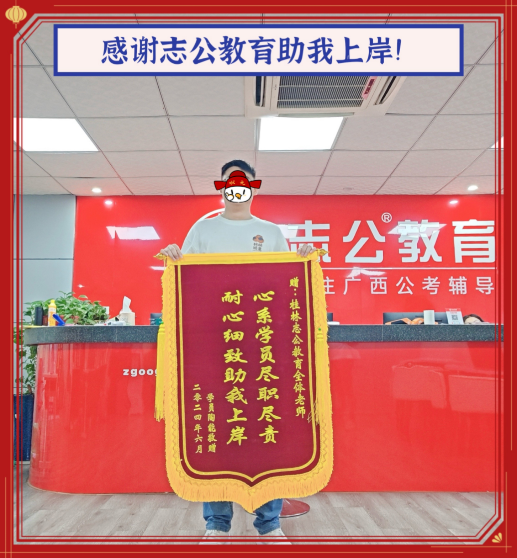 他成功上岸后,滿懷感激地給我們志公教育全體老師送來(lái)了錦旗。作為他的報(bào)班老師,我很欣慰看到他的努力得到了回報(bào)。他的勵(lì)志奮斗上岸故事也讓我深受鼓舞,讓我深刻認(rèn)識(shí)到,只要有堅(jiān)定的目標(biāo),持之以恒的努力,善于借鑒他人成功的經(jīng)驗(yàn),我們也能在工作中取得更多的成就與進(jìn)步!幫助更多學(xué)員實(shí)現(xiàn)他們的夢(mèng)想!向?qū)W員學(xué)習(xí),也向所有致力于努力備考奮斗的學(xué)員們致敬!