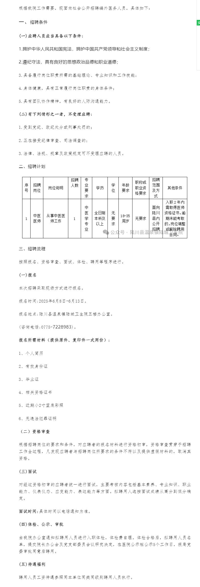 原文標(biāo)題:陸川縣溫泉鎮(zhèn)陸城衛(wèi)生院公開(kāi)招聘編外醫(yī)務(wù)人員公告