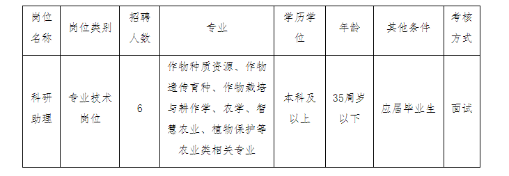 我所設(shè)有4個(gè)科室、1個(gè)種質(zhì)庫(kù)、1個(gè)中心和10個(gè)研究團(tuán)隊(duì)。根據(jù)工作需要,現(xiàn)面向社會(huì)公開(kāi)招聘編制外工作人員6名?,F(xiàn)將有關(guān)事項(xiàng)公告如下: