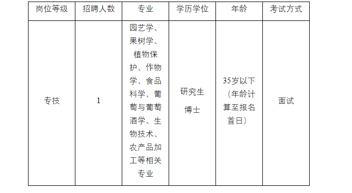 (二)園藝學(xué)、果樹學(xué)、植物保護、作物學(xué)、食品科學(xué)、葡萄與葡萄酒學(xué)、生物技術(shù)、農(nóng)產(chǎn)品加工等相關(guān)專業(yè)。