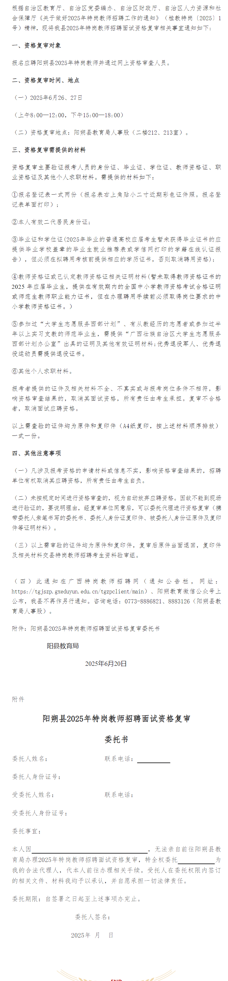 陽(yáng)朔縣2025年特崗教師招聘面試資格復(fù)審?fù)ㄖ?/h3>