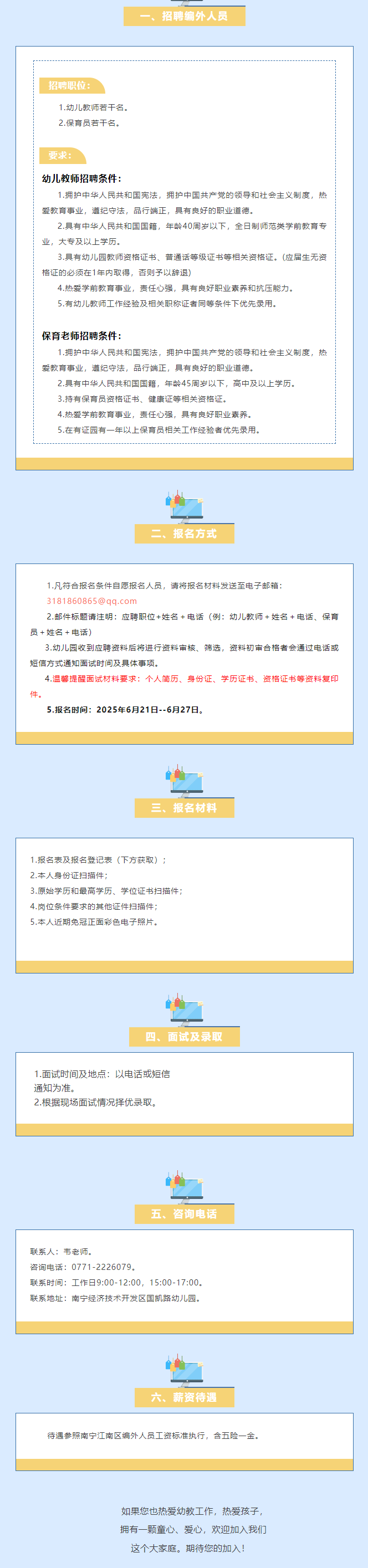 2025年南寧經濟技術開發(fā)區(qū)國凱路幼兒園招聘編外人員若干人