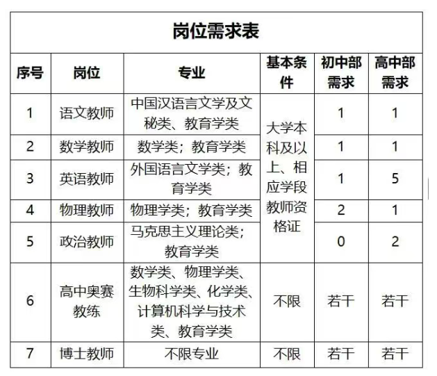 2.所學(xué)專業(yè)與報(bào)考崗位的專業(yè)要求一致或高度相關(guān);取得相應(yīng)學(xué)科、學(xué)段教師資格證(25年7月前取得)。