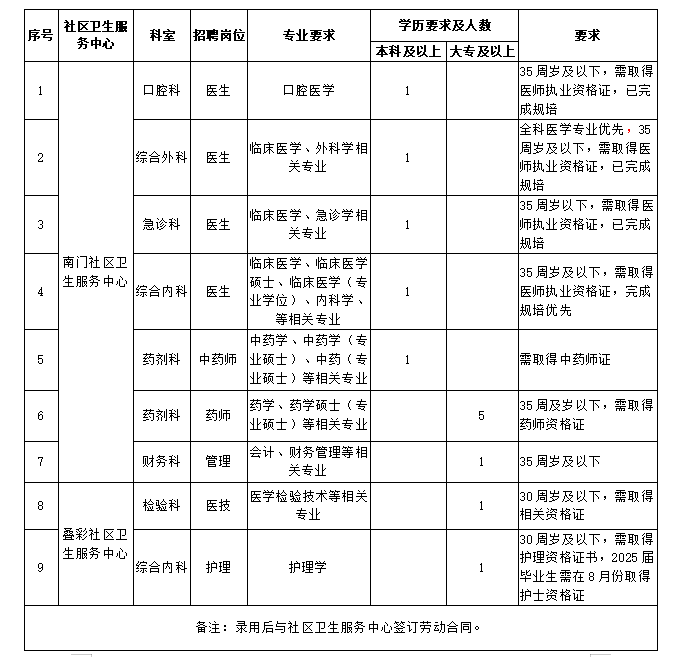根據(jù)社區(qū)衛(wèi)生服務(wù)中心工作需要,現(xiàn)將2025年度(第二批)招聘崗位及有關(guān)事項(xiàng)公布如下: