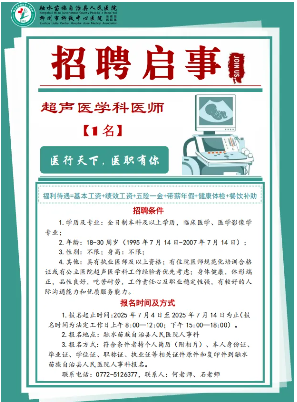 2025年融水苗族自治縣人民醫(yī)院招聘超聲醫(yī)學(xué)科醫(yī)師1名