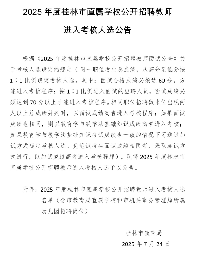 原文標題:2025年度桂林市直屬學校公開招聘教師進入考核人選公告