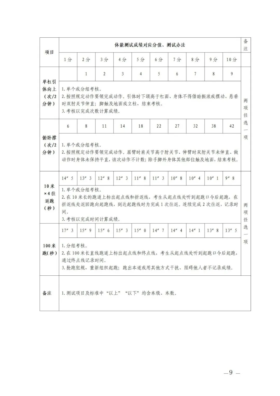 (2)選考項(xiàng)目:①立定跳遠(yuǎn)、原地跳高二選一