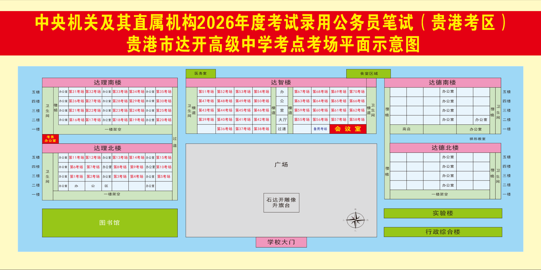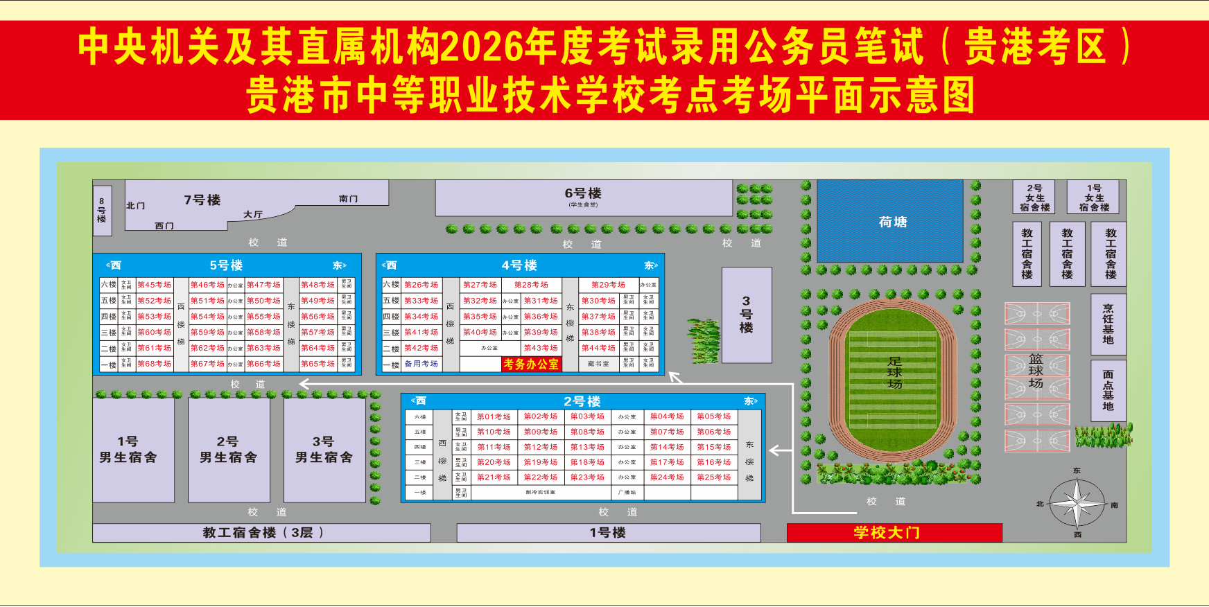 2026年度國家公務(wù)員筆試(貴港考區(qū))溫馨提示及考場分布