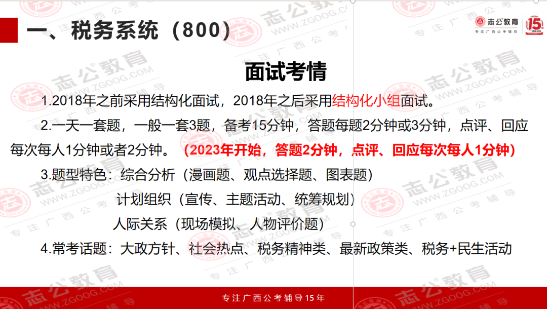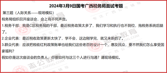 國(guó)考面試?yán)?,稅?wù)系統(tǒng)的題目一直有個(gè)很明顯的特點(diǎn),就是緊跟國(guó)家政策、貼近實(shí)際工作。尤其是2024年廣西稅務(wù)局的面試題,把這個(gè)特點(diǎn)體現(xiàn)得特別透徹。看這些題目,既能知道稅務(wù)工作實(shí)際需要什么樣的人、做什么樣的事,也能清楚面試到底要考察我們哪些核心能力。今天小志就帶大家了解一下,國(guó)考中稅務(wù)系統(tǒng)面試一些相關(guān)信息解讀:
