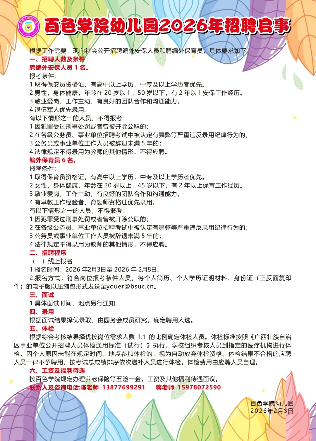 2026年百色學(xué)院幼兒園招聘7人