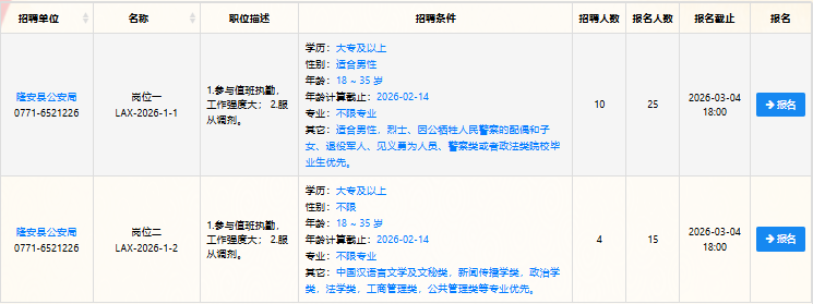 附件:1. 隆安縣公安局2026年度公開招聘警務(wù)輔助人員職位計劃表